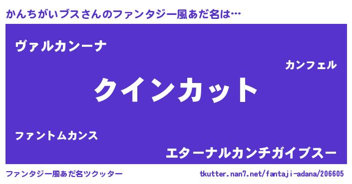 | 男性向けラノベタイトル風あだ名 | 『おまえをオタクにしてやるから、俺をかんちがいブスにしてくれ! 』 |