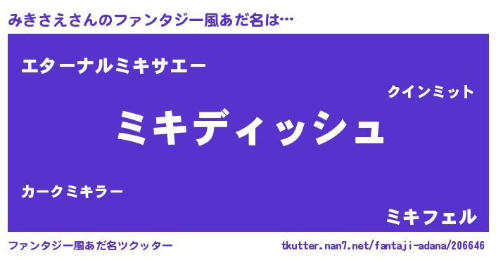 | 男性向けラノベタイトル風あだ名 | 『みきさえという概念が存在しない退屈な世界 』 |