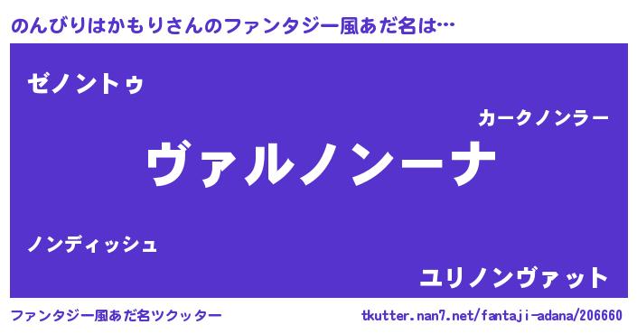 のんびりはかもりさんのファンタジー風あだ名をツクッター!