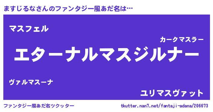 | 男性向けラノベタイトル風あだ名 | 『はたらくますじるなさま!』 |