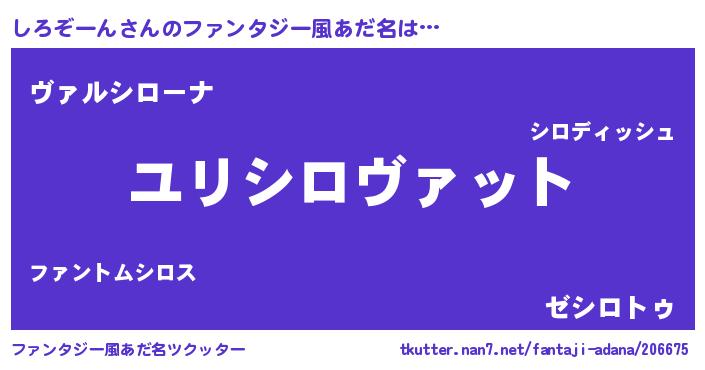 | 男性向けラノベタイトル風あだ名 | 『転生したらしろぞーんだった件』 |