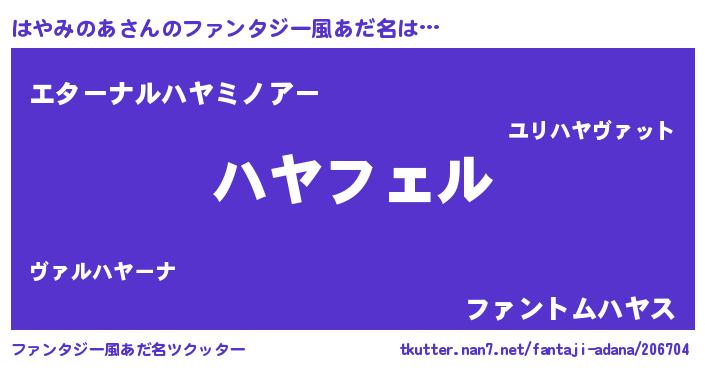 | 男性向けラノベタイトル風あだ名 | 『ハヤミノアアートオンライン』 |