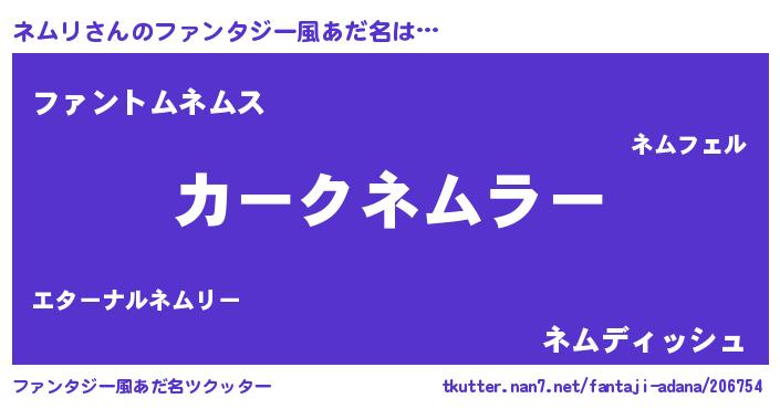 | ヒーロー風カッコイイあだ名 | 『魔戒騎士ネム』『ネオネムリ』 |