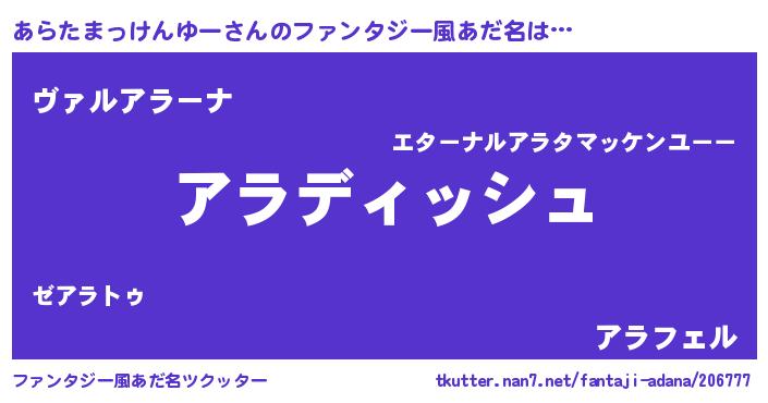 | 意味不明あだ名 | 『永久保存あらたまっけんゆー』 |