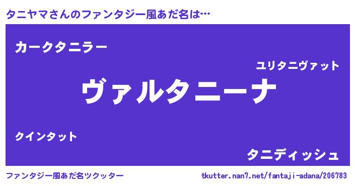 | 男性向けラノベタイトル風あだ名 | 『魔弾の王とタニヤマ』 |