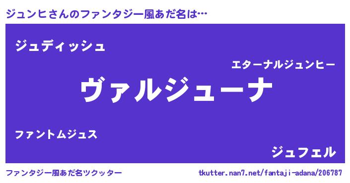 | 男性向けラノベタイトル風あだ名 | 『この素晴らしい世界にジュンヒを!』 |