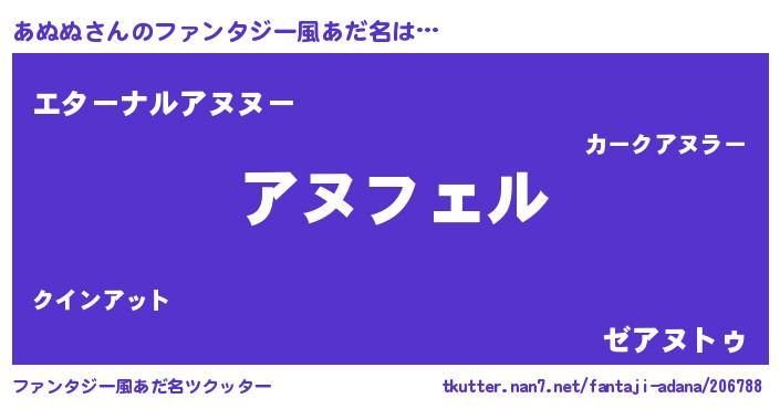 | 男性向けラノベタイトル風あだ名 | 『アヌヌアートオンライン』 |