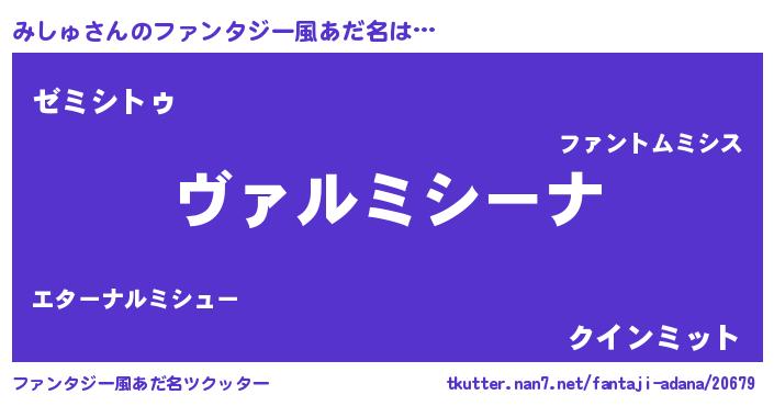 | 男性向けラノベタイトル風あだ名 | 『魔弾の王とみしゅ』 |