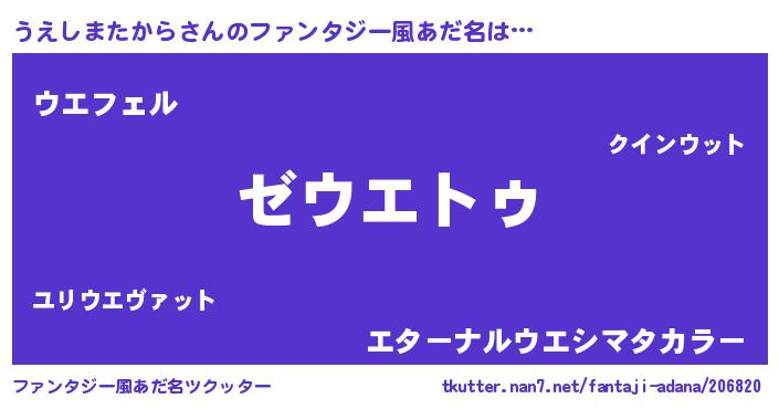 女子向けラノベタイトル風あだ名 | 『うえしまたからなんてお断りですっ。』 |