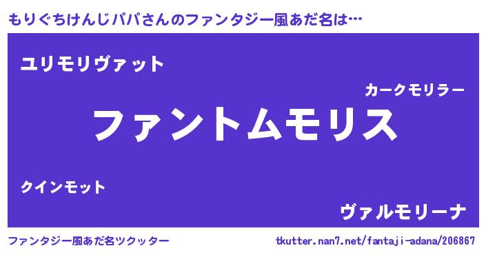 男性向けラノベタイトル風あだ名 | 『ダンジョンにもりぐちけんじパパを求めるのは間違っているだろうか』 |