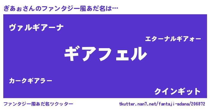 男性向けラノベタイトル風あだ名 | 『はたらくぎあぉさま!』『ぎあぉの憂鬱』 |