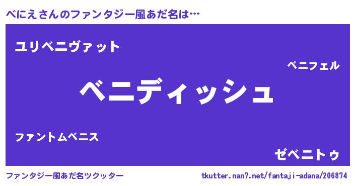 | 欧米人風あだ名 | 『アンジェラ・べにえ』『マイケルべにえ』 |