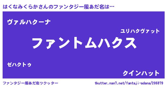 ポケモン風あだ名 | 『ヒハクナミクラカ』『ハークイ』 |