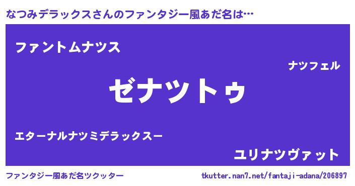 | 女子向けラノベタイトル風あだ名 | 『なつみデラックスなんてお断りですっ。』 |
