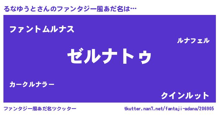 | 男性向けラノベタイトル風あだ名 | 『Re:るなゆうとから始める異世界生活』 |