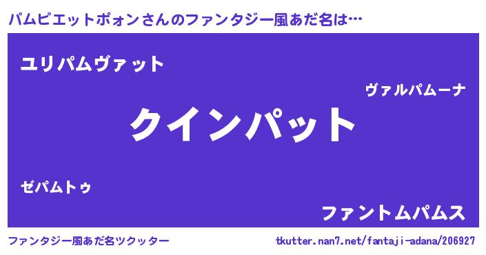 男性向けラノベタイトル風あだ名 | 『おまえをオタクにしてやるから、俺をパムピエットポォンにしてくれ! 』 |