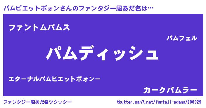 | ポケモン風あだ名 | 『ゼニパム』『ヒパムピエットポォン』 |