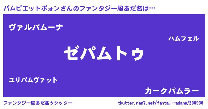 | 女子向けラノベタイトル風あだ名 | 『パムピエットポォンアンティーク』 |