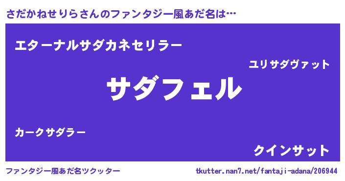 さだかねせりらさんのファンタジー風あだ名をツクッター!