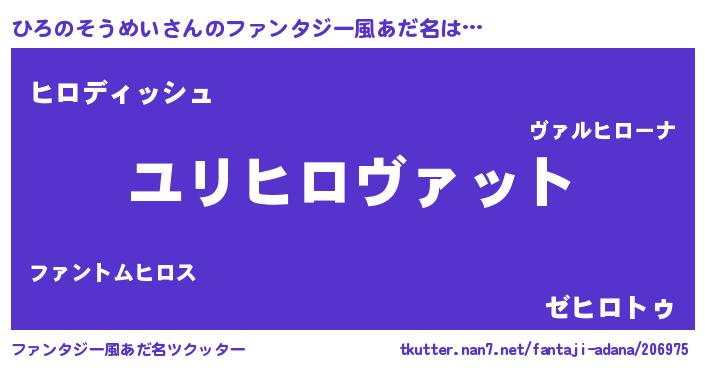 | ヘコむあだ名 | 『ひろのそうめい(震え声)』『ひろを』 |