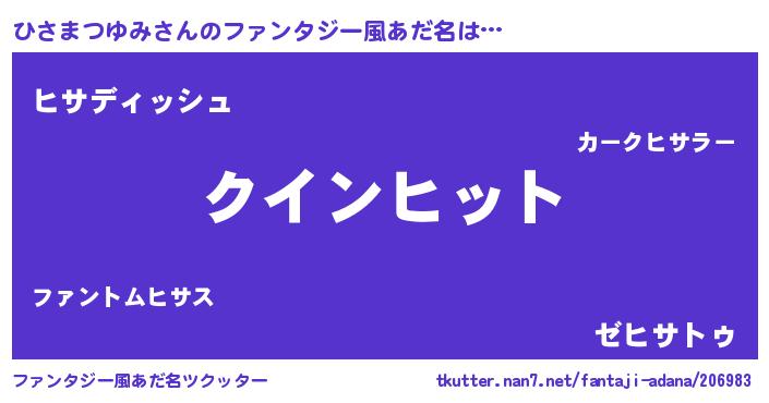 | 男性向けラノベタイトル風あだ名 | 『ひさまつゆみに滅ぼされるだけの簡単なお仕事です』 |