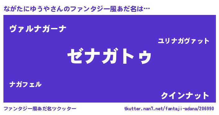 男性向けラノベタイトル風あだ名 | 『Re:ながたにゆうやから始める異世界生活』 |