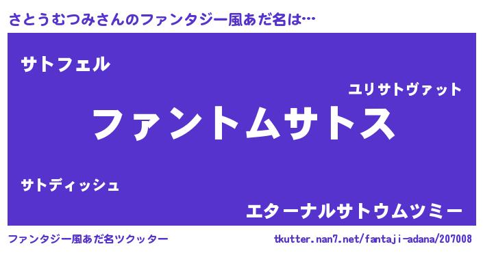 ポケモン風あだ名 | 『ヒサトウムツミ』『サトチュウ』 |