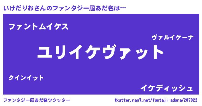 男性向けラノベタイトル風あだ名 | 『転生したらいけだりおだった件』 |