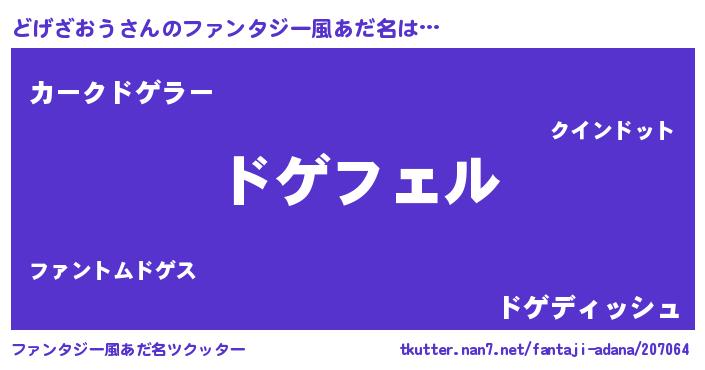 | 男性向けラノベタイトル風あだ名 | 『どげざおうの憂鬱』 |