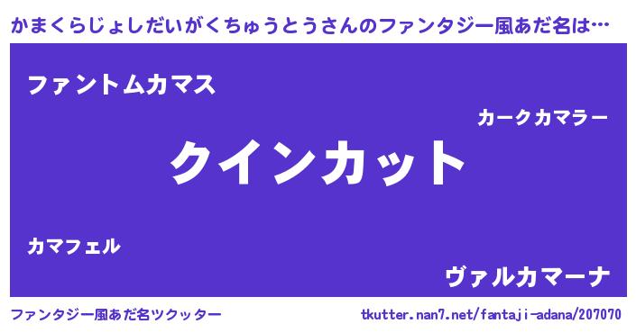 男性向けラノベタイトル風あだ名 | 『おまえをオタクにしてやるから、俺をかまくらじょしだいがくちゅうとうにしてくれ! 』 |