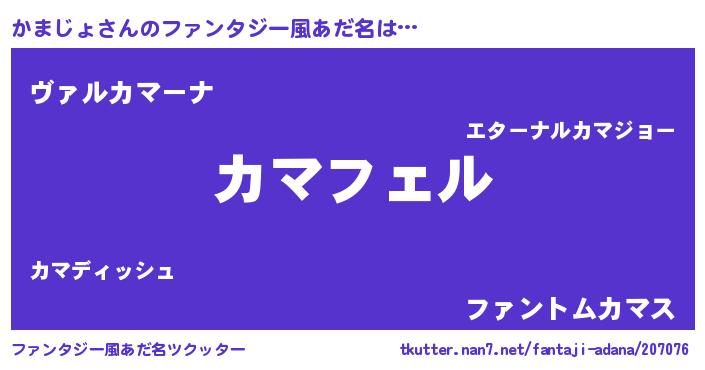 | 男性向けラノベタイトル風あだ名 | 『カマジョアートオンライン』 |