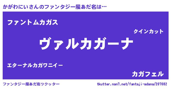 | 男性向けラノベタイトル風あだ名 | 『この素晴らしい世界にかがわにいを!』 |