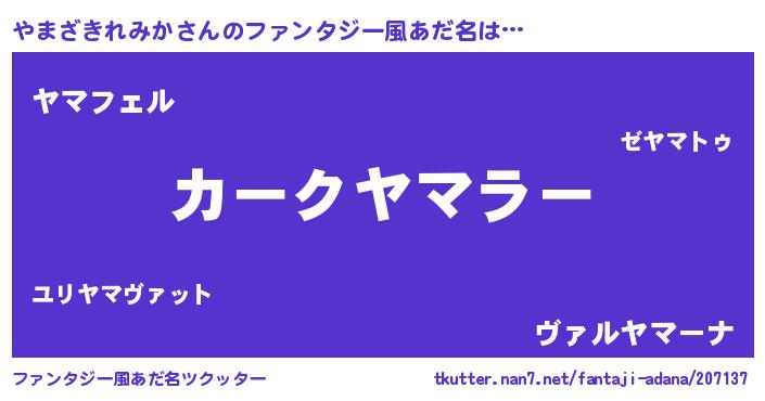 自動車の名前っぽいあだ名 | 『フェヤーマ』『ヤマティマ』 |