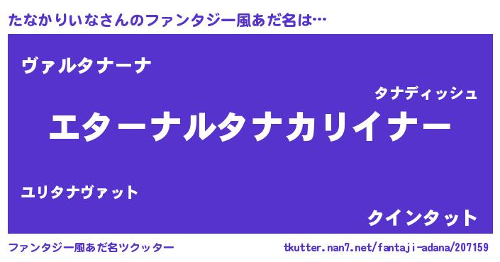 女子向けラノベタイトル風あだ名 | 『たなかりいな伯爵の花嫁』 |