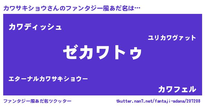 | ヒーロー風カッコイイあだ名 | 『超時空戦士カワサキショウ』 |