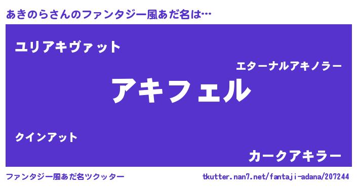 ヒーロー風カッコイイあだ名 | 『スーパーアキノラ』『愛の使者あきのら』 |