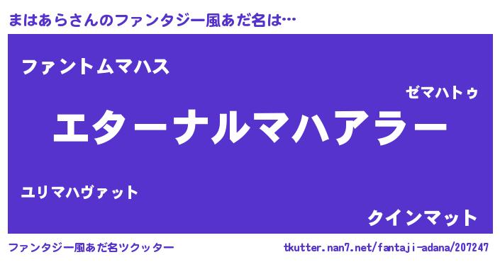 意味不明あだ名 | 『まはあらフォーエバー』『自称まはあら』 |