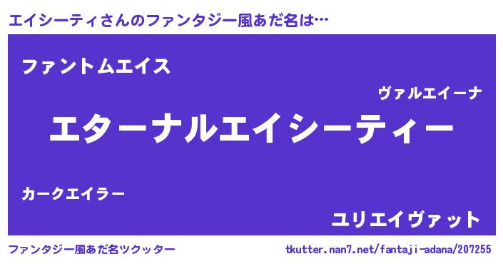 女子向けラノベタイトル風あだ名 | 『エイシーティの婚約者』 |