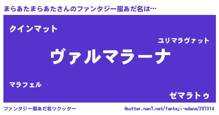 | 女子向けラノベタイトル風あだ名 | 『まらあたまらあたが死なない童話 林檎のまらあたまらあたの診療簿』 |