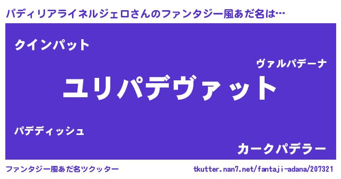 | ヒーロー風カッコイイあだ名 | 『慈愛の使者パディリアライネルジェロ』 |