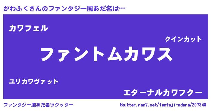 | 意味不明あだ名 | 『とにかく怪しいかわふく』 |