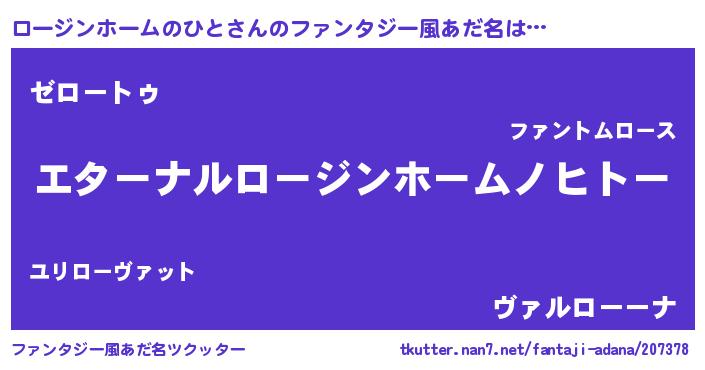 | 女子向けラノベタイトル風あだ名 | 『ロージンホームのひと伯爵の花嫁』 |