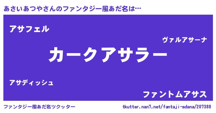 ヒーロー風カッコイイあだ名 | 『スーパーアサイアツヤ』『黄金騎士アサ』 |
