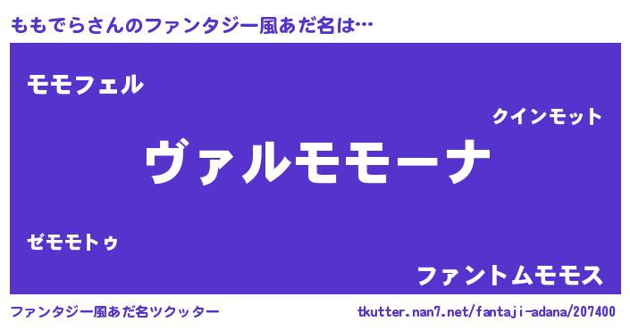 | 男性向けラノベタイトル風あだ名 | 『この素晴らしい世界にももでらを!』 |