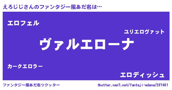 | 男性向けラノベタイトル風あだ名 | 『魔弾の王とえろじじ』『えろじじの憂鬱』 |