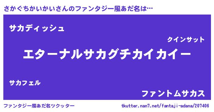 | 意味不明あだ名 | 『さかぐちかいかいフォーエバー』 |