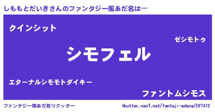 | 男性向けラノベタイトル風あだ名 | 『しももとだいきの憂鬱』 |
