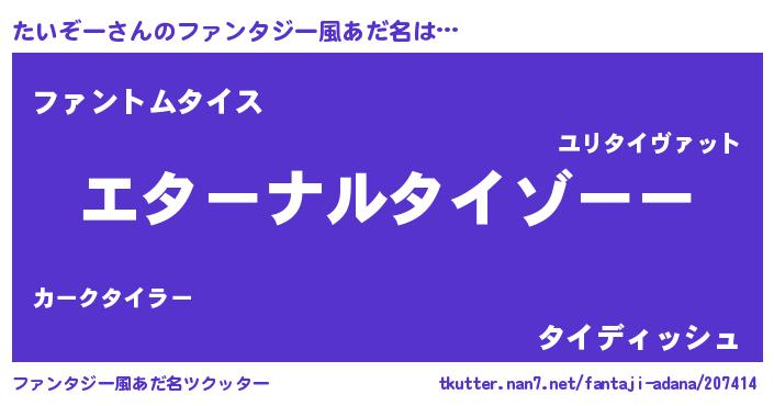 | 欧米人風あだ名 | 『たいぞークリステル』 |