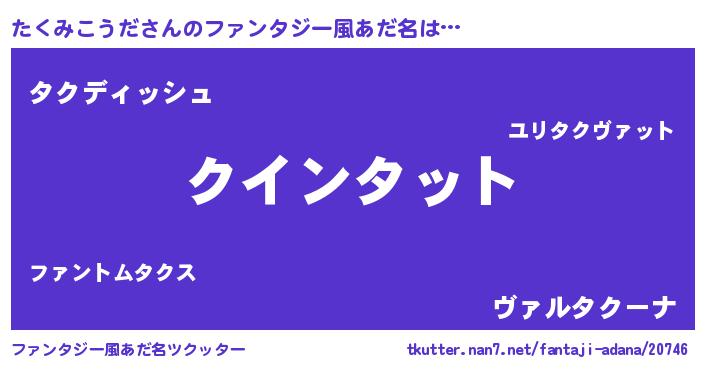 | 女子向けラノベタイトル風あだ名 | 『たくみこうだ恋絵巻』 |