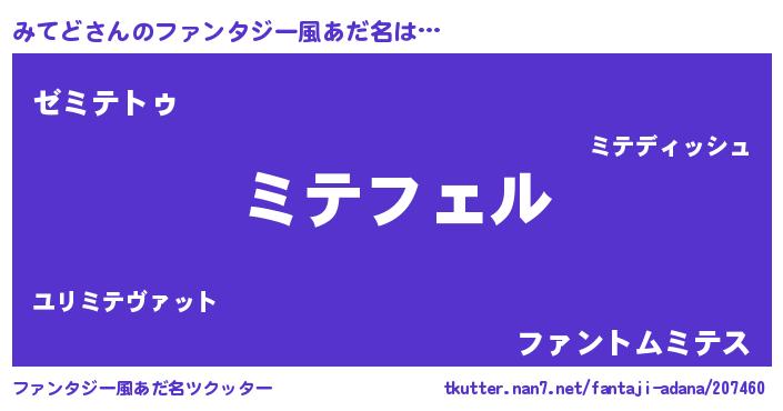 | ポケモン風あだ名 | 『ミテチュウ』『ミテセウス』 |